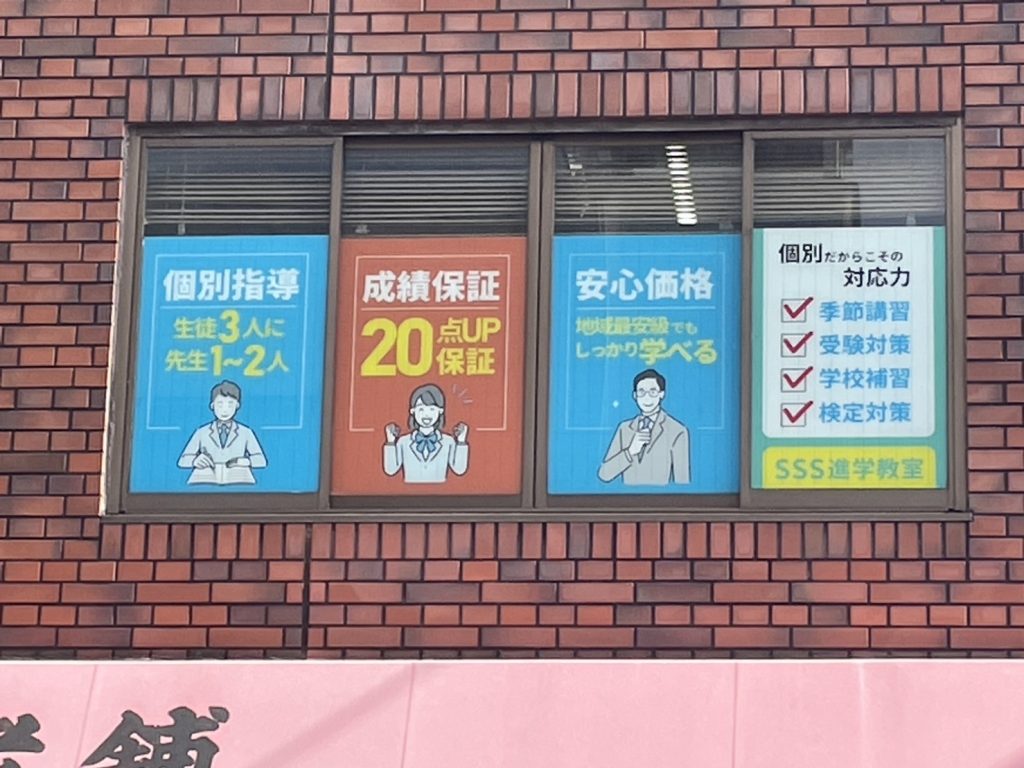 九条駅下車すぐ!お肉屋さんの2階で近隣はコンビニもあり夜間も明るく通いやすい環境です。5教科安心パックも実施中!