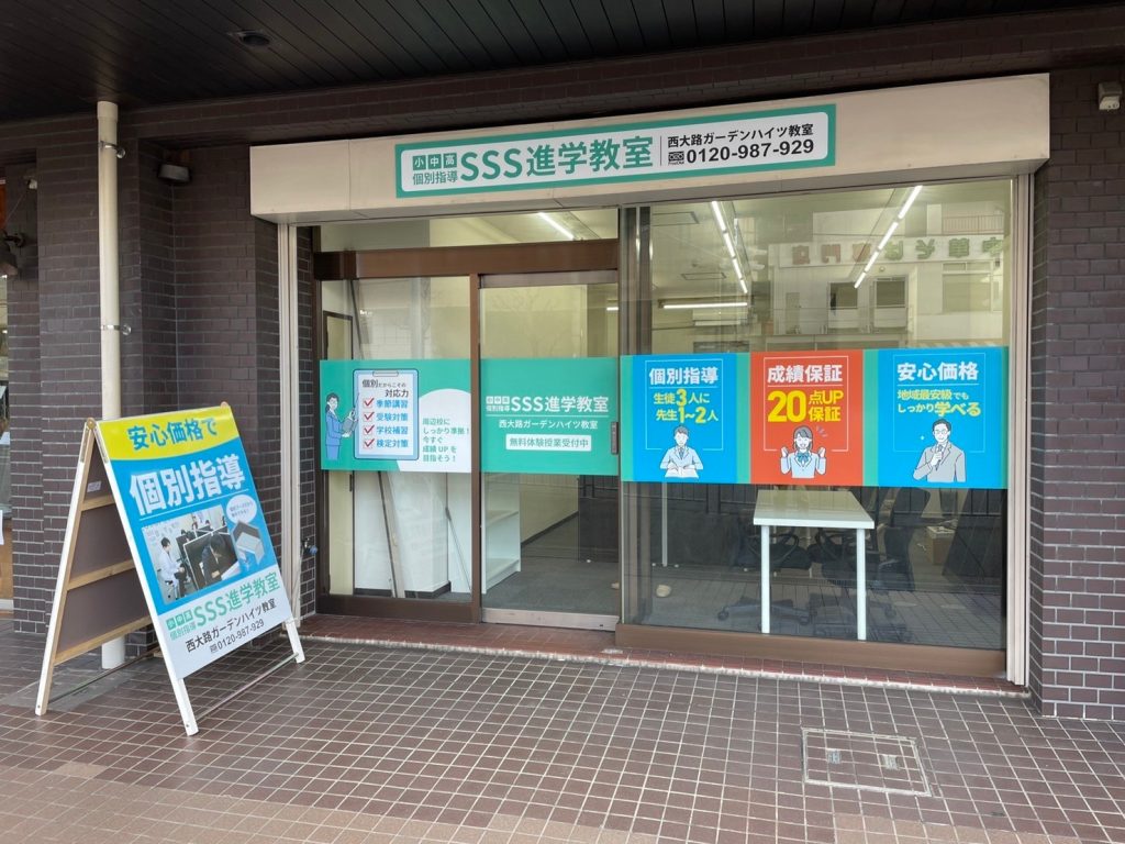 西大路九条の交差点南西側!5教科安心パック実施中です。バス停も近く、通いやすい立地で、既に多くの生徒さんが通塾中!